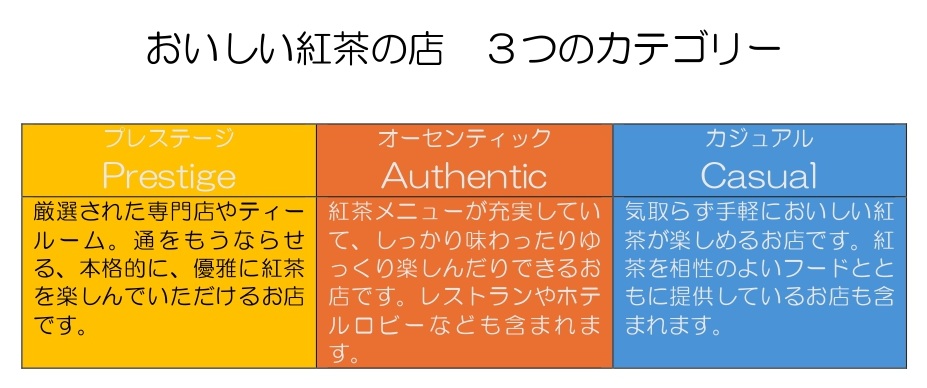 ●オーセンティック→紅茶メニューが充実していて、しっかり味わったりゆっくり楽しんだりできるお店です。レストランやホテルロビーなども含まれます。
