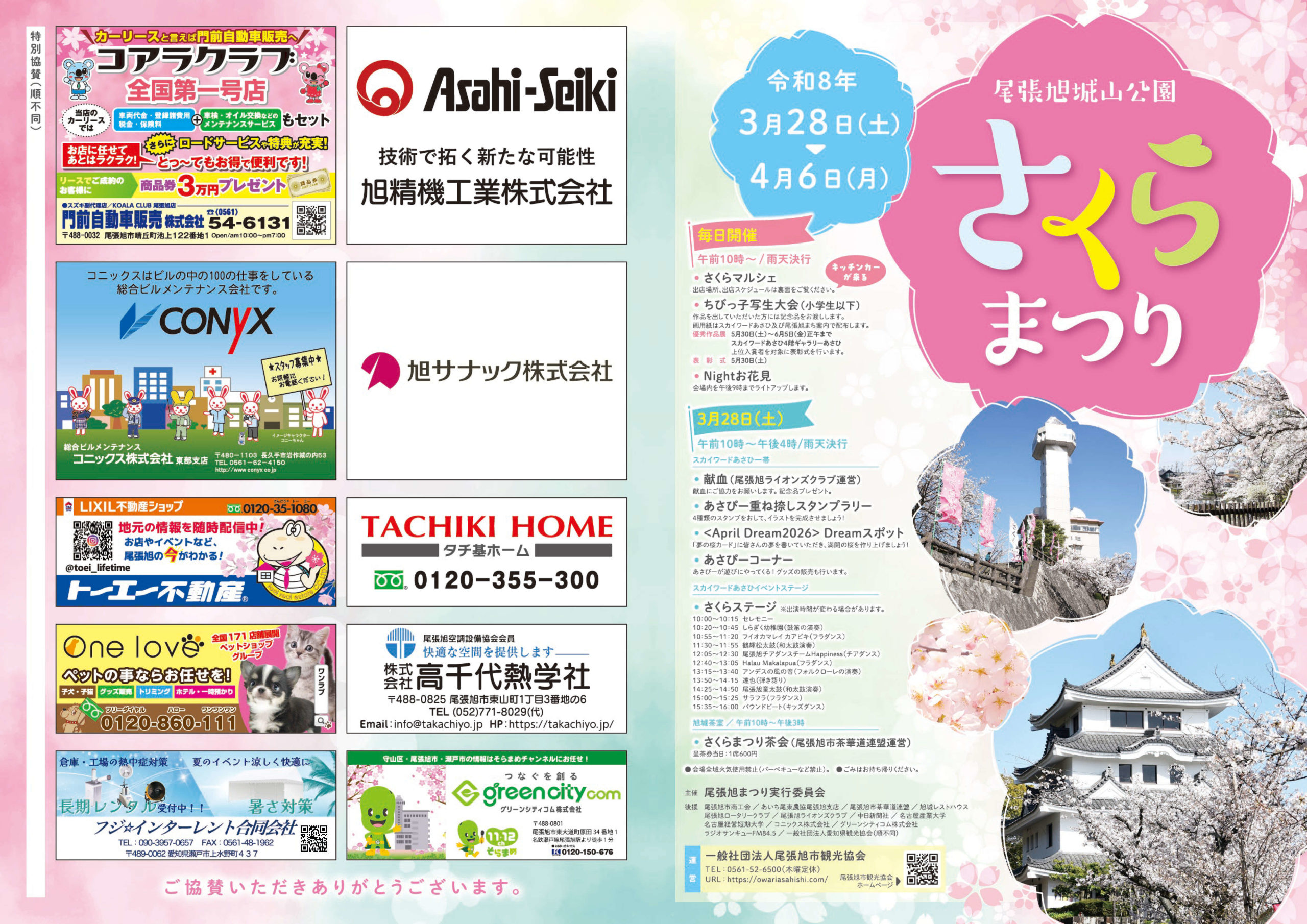 - ちびっ子写生大会(小学生以下対象。応募者には、作品提出時に記念品をプレゼント。画用紙の配布・提出先は尾張旭まち案内、スカイワードあさひ)